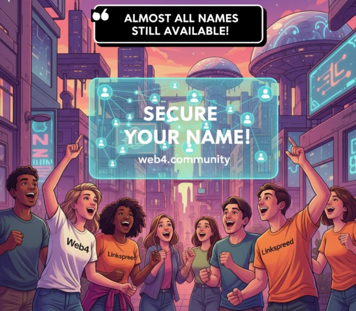 A small reminder: We recommend you start building your social network now, while almost all names are still available at web4.community. Secure your desired name before someone else does, and launch your community with the strength of Web4 and Linkspreed.