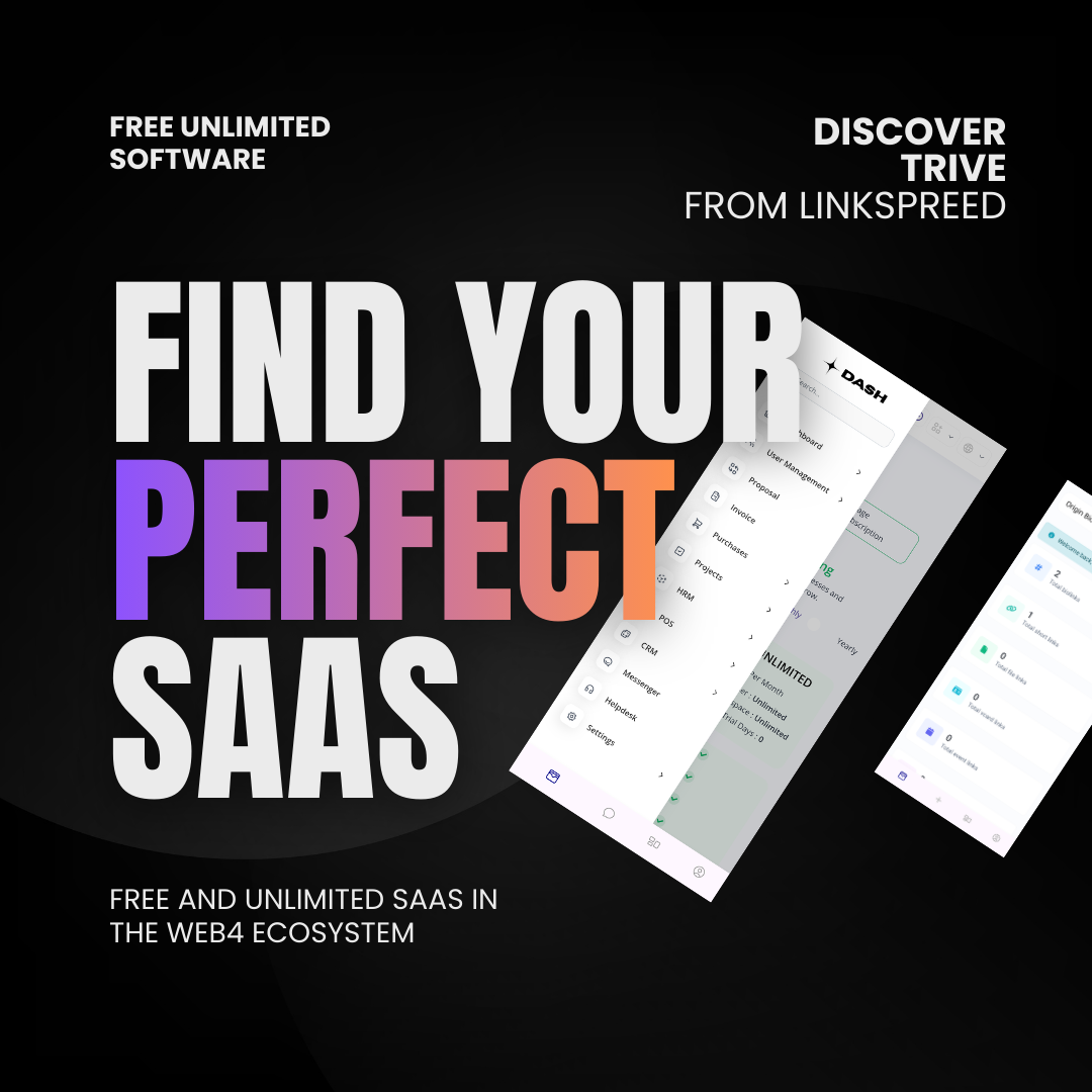 Find your free perfect SaaS on TRIVE! The future of enterprise software is here: TRIVE offers a free and unlimited SaaS ecosystem. Powered by LINKSPREED LLC and integrated into the stable Web4 community, you get all the tools you need - from CRM to PM - entirely free of charge. TRIVE is free and unlimited, powered by Linkspreed, and built on Web4 Technology. It is time to redefine your productivity.