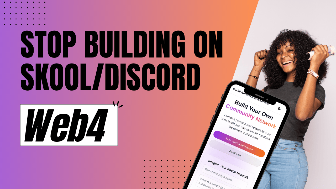 Are you paying 99 dollars a month for a Skool community? You are still building on rented land. Skool is a costly clone of Discord, inheriting all the problems: no brand ownership, clunky payment systems, and content that disappears. The real solution is ownership. Build your long-term business asset on a Web4 infrastructure. Take full control of your brand and your valuable member data. Stop renting. Start owning.